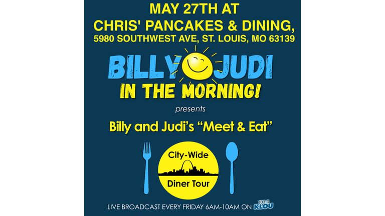 Join Billy and Judi for their next stop on the Meet and Eat Tour. They are broadcasting live this Friday morning from 6a-10a in South City at Chris' Pancakes 5980 Southwest. Swing on by for some breakfast.