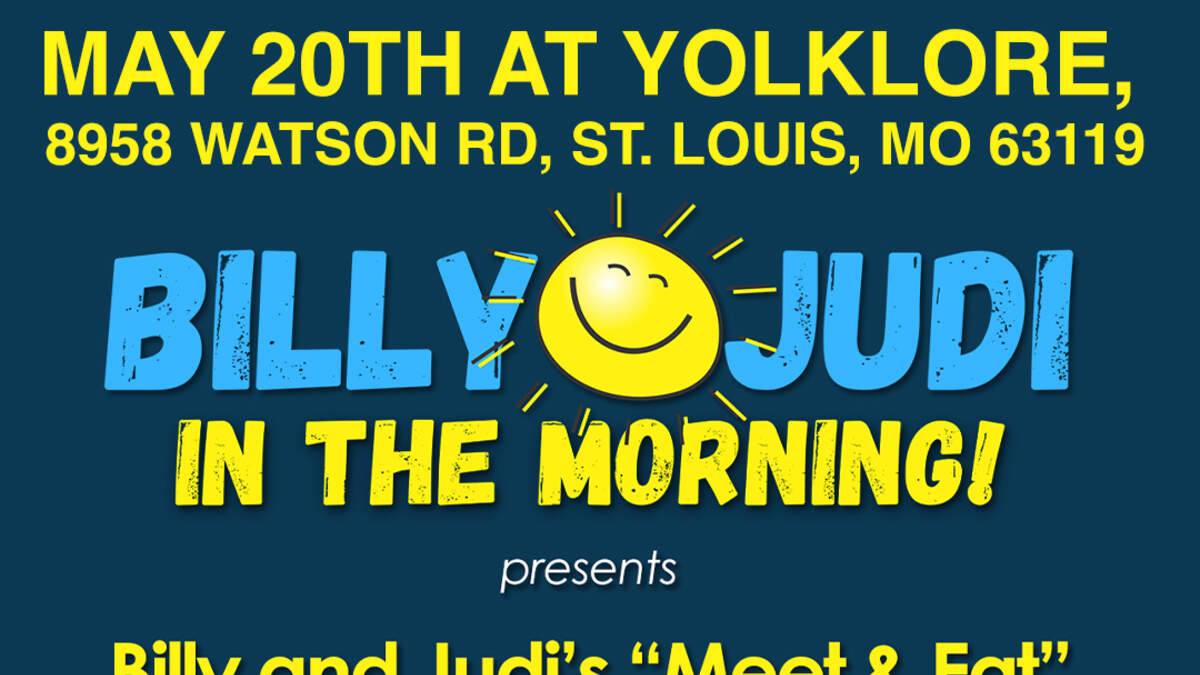 Join Billy and Judi for their next stop on the Meet and Eat Tour. They are broadcasting live this Friday morning from 6a-10a from Yokelore 8959 Watson Rd. Swing on by for some breakfast.